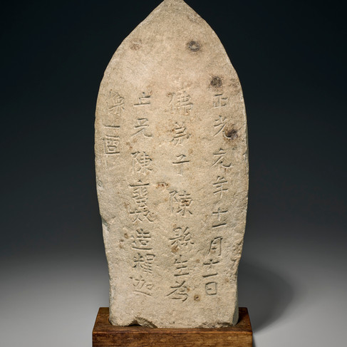 The inscription on the reverse may be translated as, 'In the first year of Zhengguang, on the eleventh day of the eleventh month, the Buddhist disciple Chen Xiansheng commissioned a figure of Shakyamuni in memory of his late elder brother, Chen Mannu.'