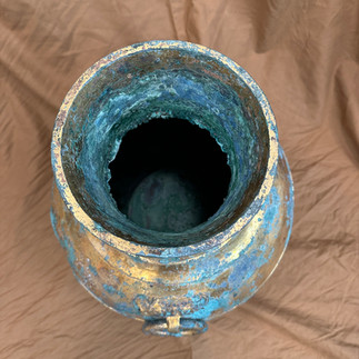 This vessel, also known as a "zhong," was used for storing wine and was typically produced either without any decoration or entirely gilded during the Warring States to Western Han periods. The present lot of such large size is particularly rare.