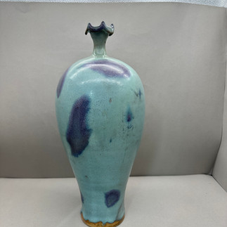 Jun vases with lobed mouths are exceedingly rare, and this particular meiping appears to be a unique example. Compare, however, three Jun gu-vases with similarly lobed rims: one formerly in the George Eumorfopoulos collection, though with an unsuccessfully fired glaze, illustrated in R.L. Hobson, Catalogue of the Chinese, Corean and Persian Pottery and Porcelain, vol. 3, London, 1926, pl.10, no. C33;
