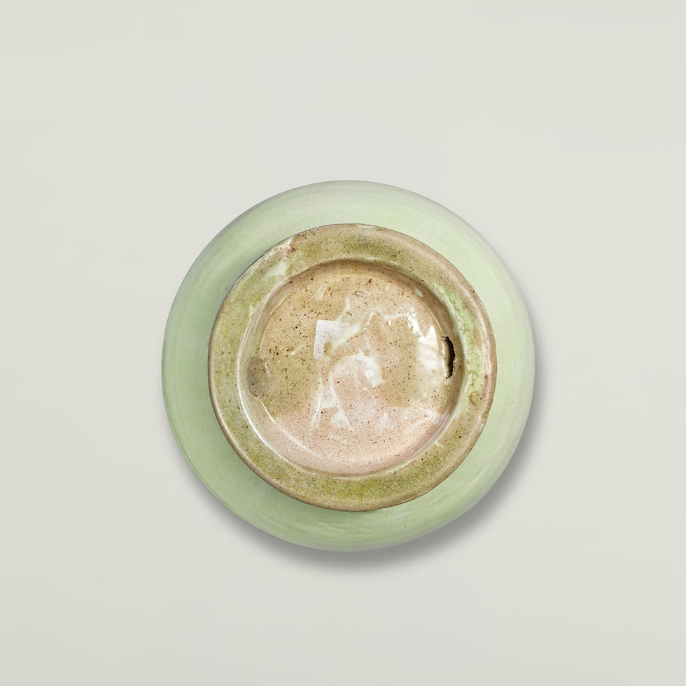 Glaze: Delicate, even olive-green or "secret-color" celadon, thin and translucent, evoking ice or jade—contrasting with the bolder, brighter green of northern Tang wares.