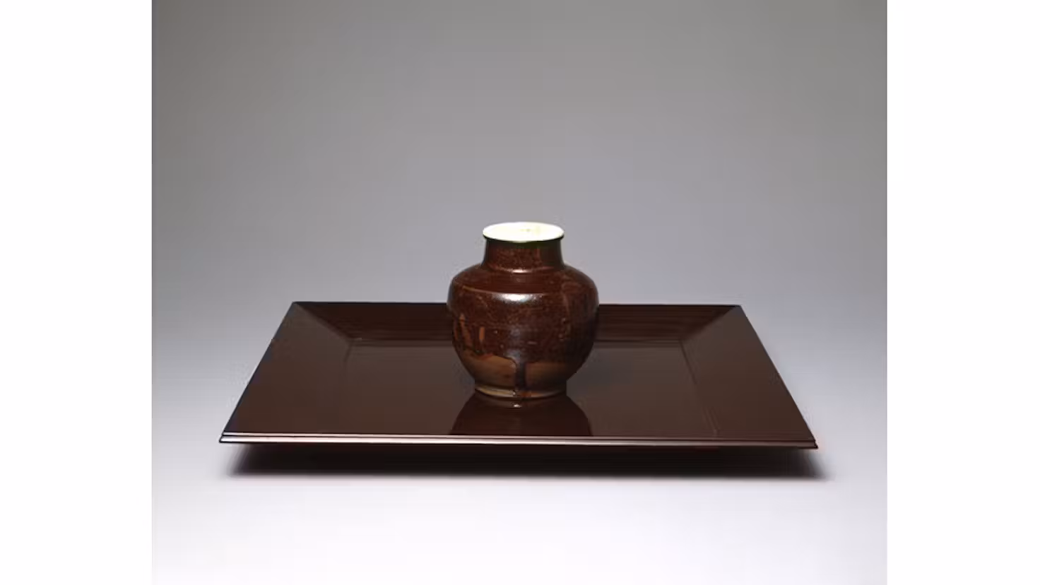 The vessel is of the katatsuki (shouldered) form, with a foot ring resembling the woven mat seat known as enza, hence its name. Because it was owned by Sen no Rikyū (1522–1591), it came to be known as “Rikyū Enza.” This tea caddy frequently appears in contemporary tea gathering records, beginning with a gathering hosted by Rikyū in the fourteenth year of Tenshō (1586). Notably, its glaze is applied in a single coat rather than in multiple layers, distinguishing it from other examples.