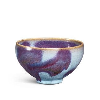 This noble bowl belongs to one of the five celebrated Song wares and at the same time one of the most daring creations China’s history. 'Jun' ware, with its entrancing purple-and-blue colour combination, was produced by many different manufactories in Henan, including the Juntai kilns in Yuzhou and even at the Ru kilns at Qingliangsi in Baofeng, probably from the end of the Northern Song period (960-1127) until at least the Ming dynasty (1368-1644).