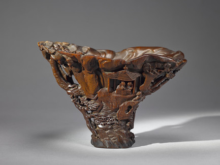 另外捐贈上博物品:青釉印花龍首提梁壺、犀角雕文人雅集杯
