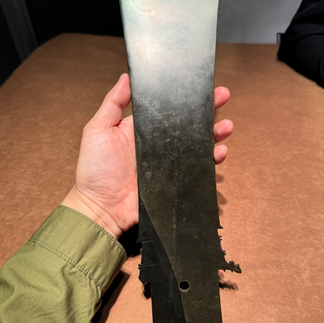 Compare two other examples from the Eumorfopoulos Collection and acquired by the British Museum, London, in 1937, illustrated in Jessica Rawson, op.cit., p. 189, fig. 3. Similar blades from the Sonnenschein and Winthrop Collections are illustrated in Alfred Salmony, Archaic Jades from the Edward and Louise Sonnenschein Collection, Chicago 1952, pl. XXVIII, p. 88, no. 1; Max Loehr and Louisa G. Fitzgerald Huber, Ancient Chinese Jades from the Grenville L. Winthrop Collection in the Fogg Art Museum, Harvard University, Cambridge, Massachusetts, 1975, cat. nos 219-221.