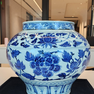 The featured 'peony' jar is produced in Jingdezhen, exemplifying the artistry and innovative designs of Yuan dynasty porcelain.